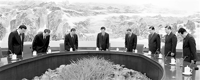 8月15日上午,中共中央政治局常务委员会会议在中南海举行。会议开始时,胡锦涛、吴邦国、温家宝、贾庆林、李长春、习近平、李克强、周永康等全体起立,向在甘肃舟曲特大山洪泥石流中遇难的同胞默哀。
