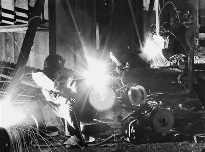 8月15日晚,福建厦漳大桥工地上的建设者正利用夜间气温较低的时段高效施工。连日来,厦门地区持续高温,中铁大桥局五公司厦漳大桥项目部本着“以人为本”的原则,对现场作业工人实行错时工作制,规定每天12时至15时的高温时段,现场工人停止户外作业,并将户外作业时间调整到早上和晚上两个时间段,确保一线工人的身体健康和施工安全。戴浩 摄
