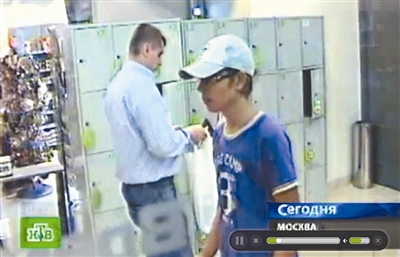 这张8月17日来源于俄罗斯莫斯科电视一频道的视频截图显示,罗马尼亚间谍加布里埃尔·格雷库(左)被俄罗斯安全部门抓捕前在莫斯科一家购物中心存放物品。