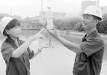 8月18日下午,湖北大冶有色金属股份有限公司冶炼厂污水处理车间污水三班班长刘柏平心还悬着:为进一步降低悬浮物和重金属含量,自己提出的“将综合药剂投加罐里的搅拌桨改为两根曝气管道”的建议上午已由维修班安装成功,可效果怎样心里没谱。18时30分,女工丁红菊兴奋地把刚取的水样递给他:“看,多像矿泉水!”看着悬浮物几乎消失的水样,刘柏平悬着的心终于放下了。张莉菲 摄