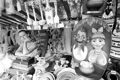 8月18日,在乌克兰中部波尔塔瓦州的大索罗钦村,一名商贩在索罗钦传统商品交易会上等待顾客。一年一度的乌克兰索罗钦传统商品交易会18日至22日在这里举行,出售的产品大多属于传统工艺品,旨在体现民族特色和弘扬民族传统。 新华社发 斯塔拉斯坚科 摄