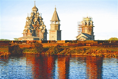 一座白色的废墟露出水面,是烧毁的教堂还是遗弃的庄园?水面越来越开阔,游轮已经驶入奥涅加湖。著名风景保护区基日岛,全程没有汽车没有柏油路,坑洼的雨水倒映着静止的风车。要不是小钟楼的木偶钟定时敲响,孤零的米哈伊小教堂就像一座农舍。