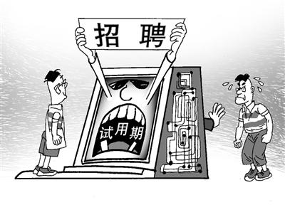 比如毕业于北京某计算机学校的小张,因其对象原因,来到辽宁抚顺安家落户。一天,她从当地的一家报纸上看到该计算机学校的招聘广告,心里甭提多高兴了。于是,她满心欢喜地前来应聘,当时学校负责人对小张的条件相当满意,而且听她的讲课,学员们反映效果也非常好。可万万没有想到五天试用期一到,她也难逃厄运。该计算机学校的负责人仍以“不适合这里的工作”为由,将其辞退。当然也是分文未得。在接受记者采访时,小张苦笑着对记者说:“我白白尽了五天的‘义务’”。