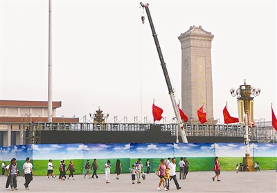 8月23日,北京天安门广场开始重新搭建更新LED巨屏。