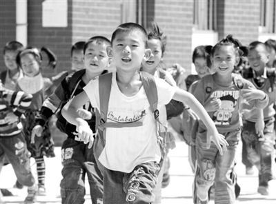 8月23日,放学铃声响起了,学生们跑出教室准备整队回家。
