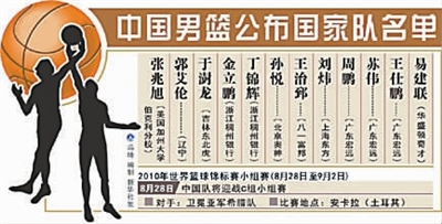 男篮此次世锦赛阵容许多参加北京奥运会的球员都未能入选,包括李楠、杜锋、姚明、朱芳雨、陈江华、王磊和张庆鹏七人。北京奥运会才刚过去两年,当时的阵容,只剩下易建联、王治郅、刘炜、孙悦和王仕鹏。