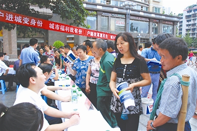 重庆当地农民正踊跃咨询户籍改革政策。本报记者 李国 摄