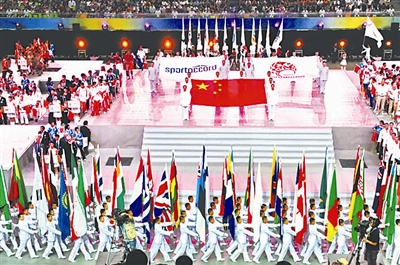 首届世界武搏运动会开幕式8月28日晚在北京国家体育馆隆重举行,共有来自106个国家和地区的1025名运动员参加13个项目的比赛。本报记者 许之丰 摄