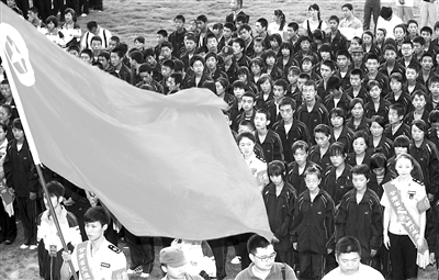 8月28日,舟曲灾区学生在兰州科技外语学校参加为他们准备的欢迎大会。