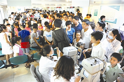 伴随着学生放暑假,前来北京同仁医院就医的患者明显增加。自2010年6月28日暑期就诊预案启动以来,截至目前,全院门急诊量共计26万余人次,与去年同期增长23%,其中验光配镜所有门市店共计接诊3万余人次。为了应对酷暑期间就诊高峰,验光配镜中心应用信息管理系统,采取电子化信息记录,优化就诊流程;中心店引进叫号系统,在醒目位置分设大屏幕,实施显示和播报就诊进程,患者可以及时了解就诊进程;医护人员佩戴麦克风为患者进行分诊等多项措施缓解暑期就诊高峰,为患者提供满意医疗服务。