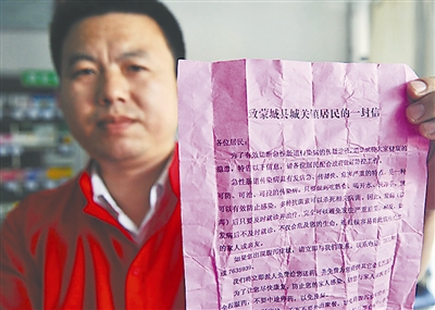 8月29日,一名蒙城县居民在展示防疫宣传单。8月16日以来,安徽蒙城县陆续报告霍乱病例30例。目前蒙城县已采取多种措施防控霍乱疫情。新华社记者 刘军喜 摄