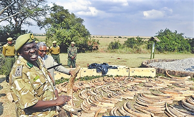 肯尼亚野生动物保护组织在8月截获了多达2吨野生大象的象牙,可能源于150头大象。同时截获的还有5只犀牛的角。肯尼亚官方称这些象牙是在内罗毕的乔莫·肯雅塔国际机场被发现的,当时走私分子正打算将它们运往马来西亚。 (海明 供图)