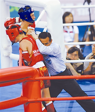 8月31日晚,北京首届世界武搏运动会泰拳比赛在北京奥体中心进行。由于双方队员争夺激烈,加上泰拳有音乐伴奏,运动员经常听不见裁判的叫停,总是裁判拉着双方队员停止比赛。