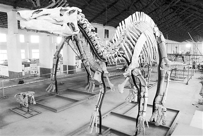 这是已修复组装完成的鸭嘴龙化石骨架。 新华社记者 吴增祥 摄