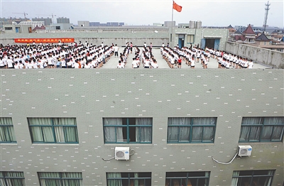杭州:外来务工子弟学校楼顶举行开学典礼