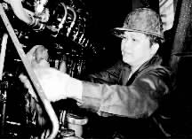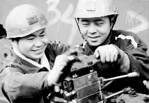 8月31日,郭卫(右)的风钻动力改造经过一个星期的试用终获成功!在山东兖矿集团兴隆庄煤矿掘进三队,职工们用风钻打地锚拔钻常需要俩人帮忙,费时费力,维修组副组长郭卫和工友们摸索着设计,在改造管节连接上动脑筋,让风钻风、水转换、双路同时提供动力,一下子让工效提高两倍,劳动强度也大大降低,就此,郭卫当选为月度创新能手。 董朋 摄