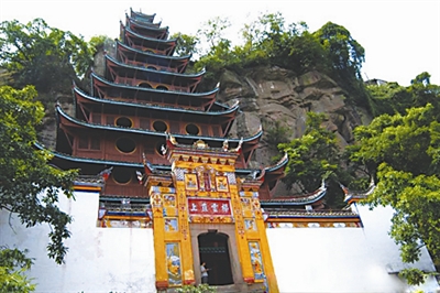 三是建筑设计奇。石宝寨的十三层彩楼,建筑在四壁如削的悬崖上,确实堪称“神矣绝矣,叹为观止矣!”那别具一格的砖石结构寨门,横看五光十色,近看玲珑雅致。门顶上琉璃檐下,镶嵌着立书“小蓬莱”和横书“梯云直上”几个大字。寨门两侧,镂刻着“五龙捧圣”、“双狮戏彩”的精致浮雕。那五龙双狮的奔驰、飞翔之态,活灵活现,富有强烈的艺术感染力。