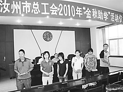 随着大学新生入学日期的临近,河南汝州市总工会举行的金秋助学活动也达到了高潮。在日前举行的助学金集中发放仪式上,副市长韩自敬等为37名困难职工子女发放了总计4.4万元助学金。李军现 摄