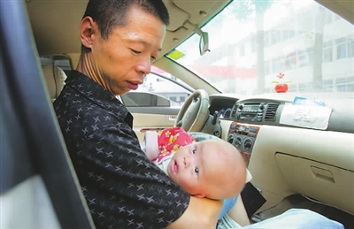 2010年8月31日早上,西安市开出租车的李海军发现一名男婴被遗弃在车后座,李师傅放弃运营将孩子送到公交分局,并协助民警将孩子安全送往儿童福利院。图为李师傅抱着弃婴。CFP