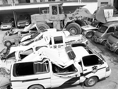 8月30日,湖南省沅陵县公安局对查获的28台假警车进行了集中销毁。