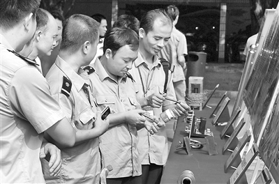 8月31日,南宁铁路局职工正在兴致勃勃地参观技术革新发明项目获奖展览。当日,南宁铁路局、局工会在柳州机务段举行全局职工技术革新发明项目命名仪式,首次以职工姓名命名并表彰奖励39项革新发明项目,有效地激励和深化了该局以“五小”为主要内容的群众性技术革新活动。
