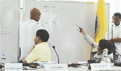 9月7日,在菲律宾首都马尼拉举行的“事件调查和评估委员会”听证会上,被劫持大巴的司机卢邦(左一)在接受质询。