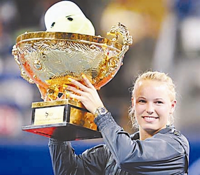10月11日,中网女单新科冠军、丹麦选手沃兹尼亚奇高举奖杯。 新华社记者 李文 摄