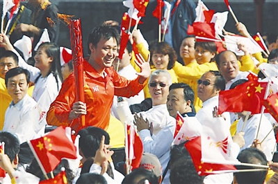 10月12日,第16届亚运会火炬点燃暨火炬传递启动仪式在北京天坛举行。张琳成首棒火炬手。 CFP供稿