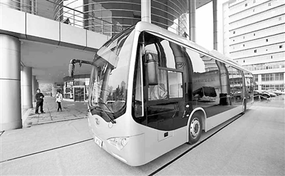 10月11日,一辆比亚迪K9纯电动大客车停在科交会现场。