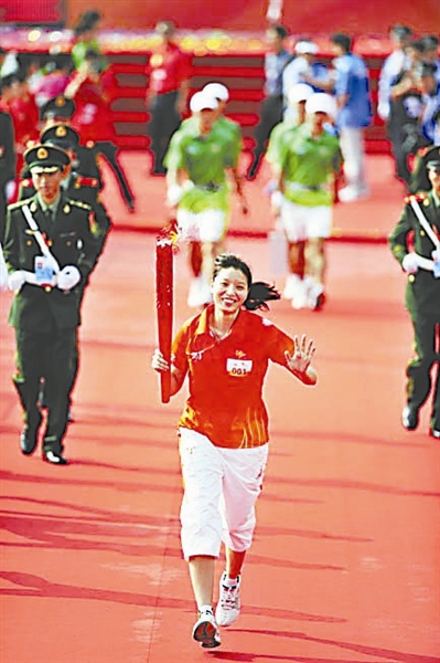 10月13日,第16届亚运会火炬传递在广东省内首站中山市进行。图为第一棒火炬手、奥运会冠军杨维从起点孙文纪念公园出发。