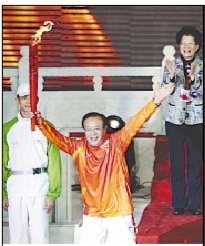 10月14日,火炬手于再洲在火炬传递中。当日,第16届亚运会火炬在冰城哈尔滨传递。