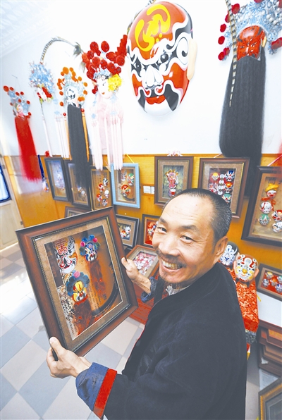 10月16日,河北省固安县焦氏京剧脸谱的第三代传承人焦影明先生正在为完成一批国外定单而忙碌着。近年来,中国的京剧和京剧脸谱艺术引起越来越多的外国朋友的兴趣,目前焦氏京剧脸谱已发展到300多个品种,作品远销到美、英、法、澳、韩和东南亚的30多个国家和地区。本报记者 张宪 本报通讯员 李德明 摄