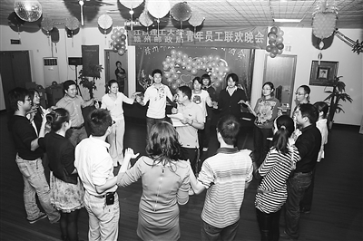 为落实企业关爱员工计划,替未婚青年员工搭建交友平台,10月17日,江西省赣州市邮政局工会与江西理工大学工会联合举行青年员工联谊活动,活动内容包括登山、聚餐和联欢等内容。图为两个单位的青年员工正在举行联欢活动。 李穗 摄