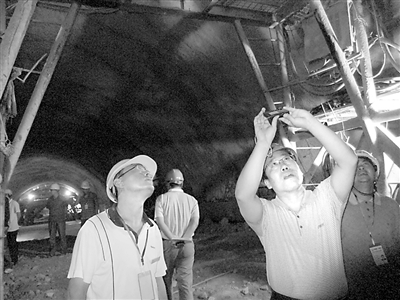 图为建管处副处长拿着录相机拍录掌子面掘进施工情况。郑传海 摄