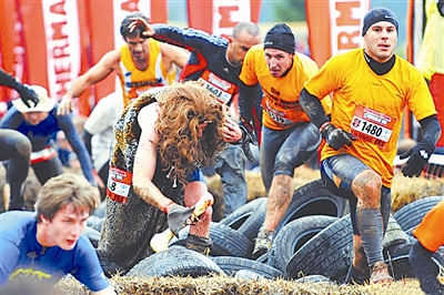 10月17日,法国东部拉布雷斯举行首届“壮汉”跑步大赛。2000多名身强力壮的参赛者在长达13公里的泥泞路面上一决高下。他们要钻过用木头和钢管搭建起来的“隧道”,踏过许多轮胎摆成的“龙门阵”。图为参赛者争先恐后,奋勇向前。谢涛 供图