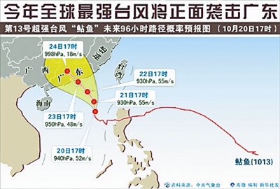 据新华社北京10月20日电 今年以来全球最强的台风“鲇鱼”将于22日夜间到23日正面袭击广东。目前风力强度超过2008年重创广东的“黑格比”,“鲇鱼”同时也将对海南产生较大影响。广东海南两省积极部署,做好迎战超强防台风“鲇鱼”的准备工作。据国家防汛抗旱总指挥部统计,截至目前,广东省48646艘渔船已全部回港避风,11476名渔排养殖人员全部上岸避险。海南省26060艘作业渔船已全部回港避风,沿海危险区域人员已全部做好转移上岸准备。