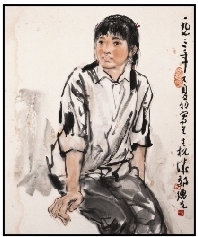 方增先曾画了不少优秀的人物画,都是真情实景的平常人,如《石油工人》、《工人的女儿》、《帐棚里的笑声》、《昆仑月色》等。他作画是写出来的,用笔方中见圆、中西融合、是以中为主的新笔法。在线条的组织上、人物的夸张变化上、笔法趣味等方面都令人耳目一新,既有石刻的凝练沉着,又有文人画的余韵。学洋、用洋但不崇洋,在他纵横飞舞的笔墨之中,始终不离中国民族文化的根气。 法明