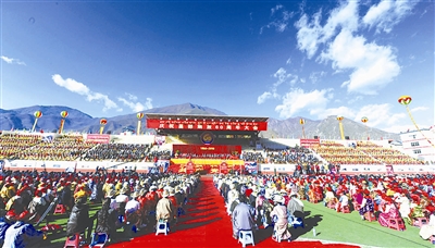 10月23日,庆祝昌都解放60周年大会在昌都镇举行。当日,西藏昌都地区解放60周年大型庆祝活动在昌都地区津昌体育文化活动中心隆重举行。 新华社记者 格桑达瓦 摄