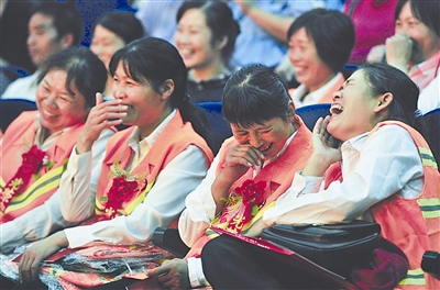 10月24日,武汉市洪山区对该区2000多名环卫工人中的代表进行表彰,并请来著名相声表演艺术家和省京剧院的艺术家们,在节日里为环卫工送上一顿精神大餐,精彩的表演让环卫工人们笑得合不拢嘴。10月26日,武汉市2.1万余名环卫工将迎来第十四届“环卫工人节”。叶火生 摄