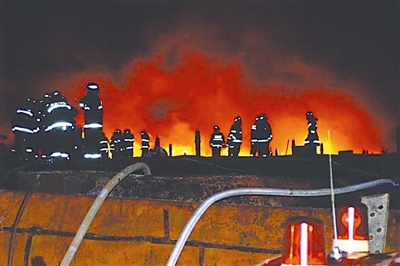 10月24日16时10分左右,大连中石油国际储运有限公司油库再次发生火灾,起火的正是7月16日发生爆炸的103号油罐,事发前103号罐正在被拆解。图为火灾现场。宋太盛 摄