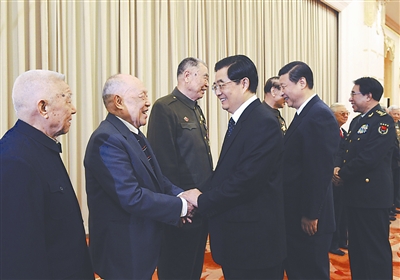 胡锦涛会见参加过抗美援朝的老同志和志愿军英模代表 习近平一同会见并在座谈会上发表讲话