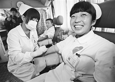 10月22日,昆明同仁医院的医护人员共献血15000毫升。血液中心工作人员表示,医务人员献出的血液,对缓解昆明血库缺血问题,将起到积极的作用。昆明市持续3个月库存血量短缺,本月达到历史最低点。为解燃眉之急,医护人员纷纷挽起袖子,上阵献血。 江洋 摄