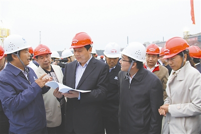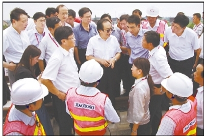 沪杭客专公司总经理钱桂枫在工地检查指导。郭润滋摄