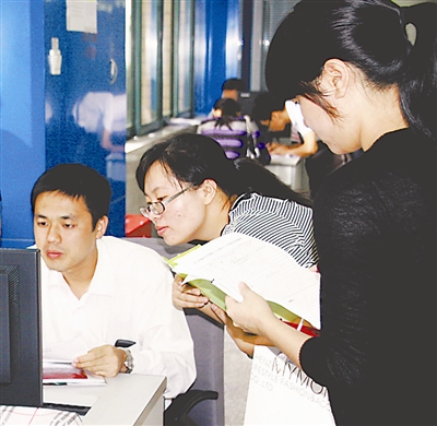 10月26日,外来务工人员在深圳市职业介绍服务中心进行网上入户申报。
