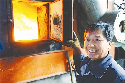 10月26日,沈阳市一家供暖公司的工作人员开始暖炉。