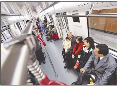 10月28日,试乘乘客在体验广佛线轨道交通。