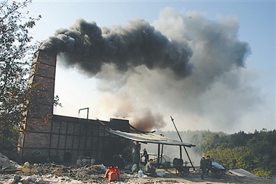 位于江西省乐平市镇桥镇和万年县石镇镇交界的地方有一家污染企业,该企业排出的浓烟严重影响了周边村民的生产和生活。10月28日上午笔者来到这里,发现这是一家没有任何证件也没有办理任何手续的铸造企业。笔者在现场被剌鼻的气味剌激得直打喷涕,眼睛也熏得很难睁开。原来该企业将报废的集成块拿来锻烧,铸成铁块,然后拉到其它地方进行深加工。工人在恶劣的环境下生产,没有任何防护措施。排放的浓浓黑烟,吹到几百米之外的万年县石镇镇,有毒的废渣就往旁边的鱼塘里排放。下午3时,记者和乐平市环保局的同志再次来到现场,情况依然和上午一样。据了解,该企业在此生产已一年多了,当地村民多次向有关部门反映,一直未果。艾世民 刘力溱 摄