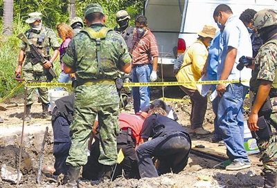 警方当日在此发现了15具尸体,据信是9月份在一起大型绑架案中的失踪者。9月30日,一伙武装人员在阿卡普尔科绑架了由西部城市莫雷利亚前来旅行的22名男子。该事件可能与两地犯罪团伙的火拼有关。新华社发