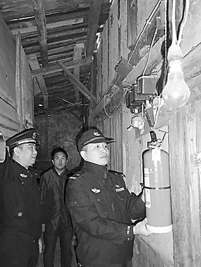 近日,福建省南平梅山派出所出资购回150个灭火器,配发给辖区易发生火灾的木质居民房中,民警们将灭火器悬挂在楼道及门框等显眼位置,并现场教给居民如何操作使用,以保护辖区群众的生命财产安全。