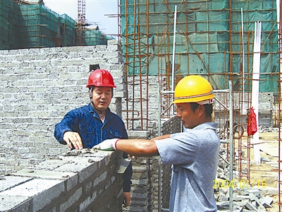 “当好掂砖提泥的临时工,光有力气不行,关键是眼睛头儿要亮。” 彭心强说,他很注意观察每个师傅的习惯,总是随着师傅砌墙的进度,把砖、灰放在他们各自最顺手的地方,而且摆放的位置井然有序,普通工人只能供应3个砌墙的师傅,他却能供5个,很快就被工地留用了。